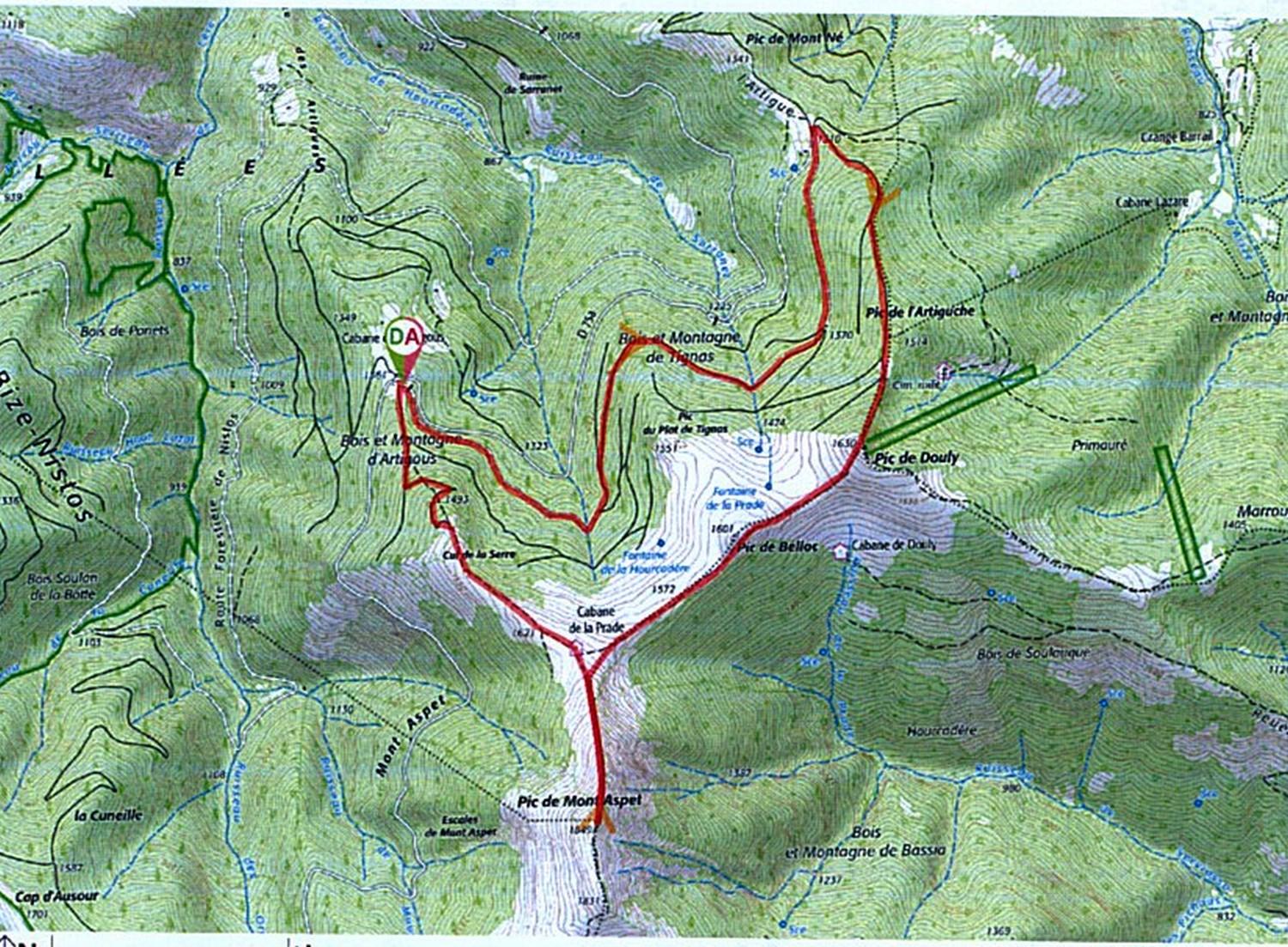 Roger propose le pic du Mont Aspet (1849 m) en boucle. 9,83 km et 647 mètres de dénivelé positif cumulé. Niveau 3 (plan joint) .