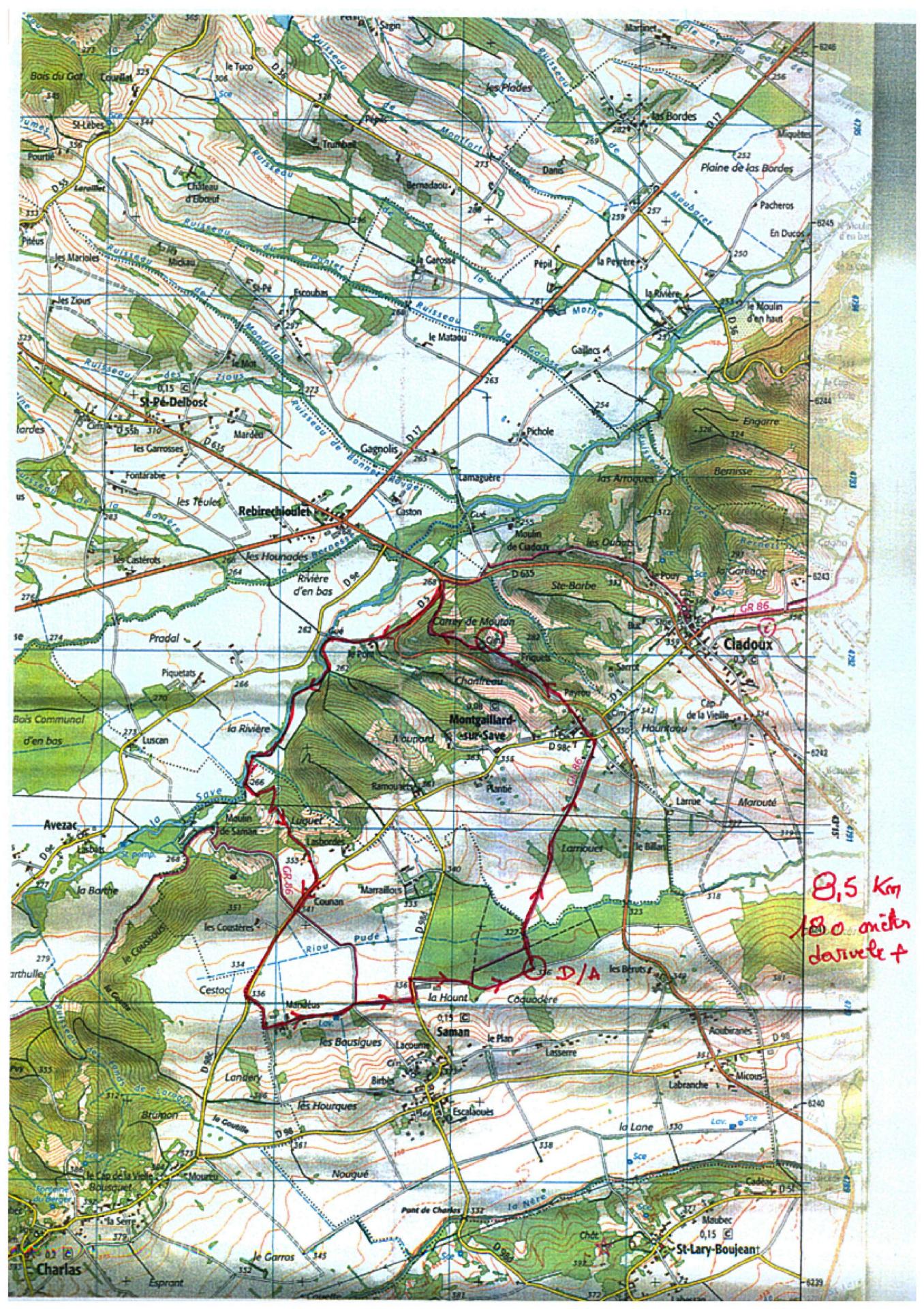 Du point pique-nique (situé à l’entrée de la partie médiane du bois de Saman) nous rejoindrons le village de Montgaillard direction l’ancien cimetière et la motte castrale qui daterait du XI ème siècle. Descente vers la Save par le GR 86, ensuite, direction le moulin de Saman. Une petite grimpette de 80 mètres pour rejoindre le quartier de « Counan » et retour vers les voitures pour le pique-nique par le lavoir du « Mandéous » .