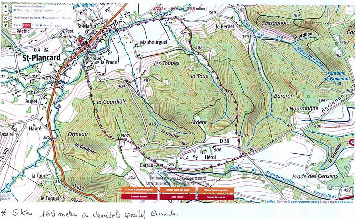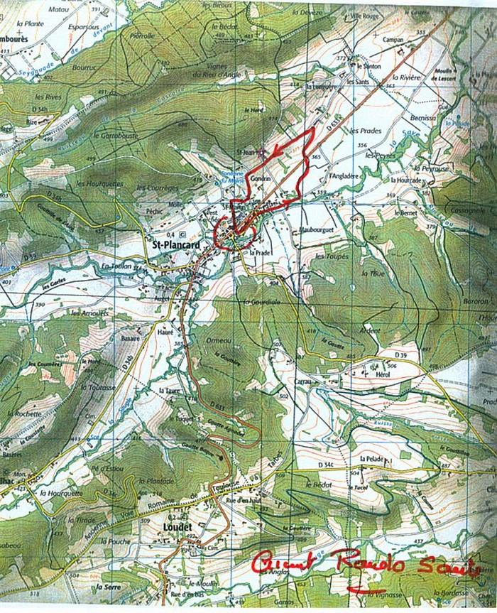 1- Boucle au sud de St Plancard, 5 km et 165 mètres de dénivelé positif cumulé (Plan Joint ).